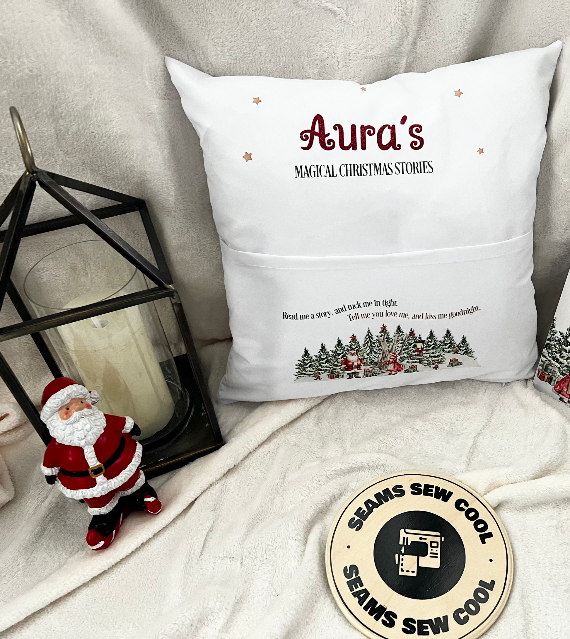 The perfect spot to save your bedtime stories in the run up to Christmas Eve. This cushion cover will be personalised with your names or how about just your family name if there is more than one literary lover in your house.